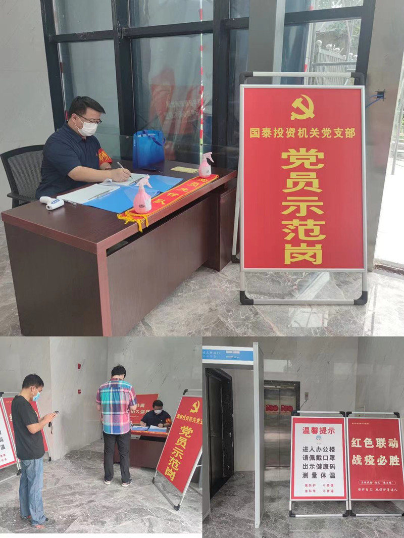 國泰投資公司在此次疫情防控中,獨(dú)立設(shè)置員工出入口,并在出入口設(shè)置疫情防控監(jiān)測(cè)點(diǎn),每天早上由“先鋒隊(duì)”黨員輪值,督促正確佩戴口罩,查看“兩碼”,測(cè)量體溫等,構(gòu)筑群防群治的嚴(yán)密防線。8月9日一早,黨總支書記霍凱同志以身作責(zé),作為先鋒隊(duì)第一個(gè)正式“上崗”的黨員走上防控監(jiān)測(cè)服務(wù)第一線?!?